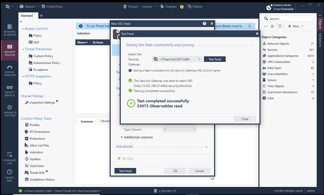 Check Point calls this feature Custom Intelligence (IoC) Feeds, which provide the ability to add custom cyber intelligence feeds into the Threat Prevention engine.